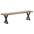 Ob für das tägliche Frühstück oder das mehrgängige Menü mit Freunden - auf der ca. 220 cm breiten Bank mit gerader Kante findet jeder komfortabel Platz. 2 Beine aus Stahl in X-Form setzen währenddessen in Anthrazit lackiert einen spannenden Akzent. Darüber hinaus verleihen sie dem Möbel eine großzügige Belastbarkeit von ca. 250 kg. Bei dieser Sitzbank aus Holz und Metall trifft stilvolle Rustikalität auf ein umfangreiches Platzangebot!